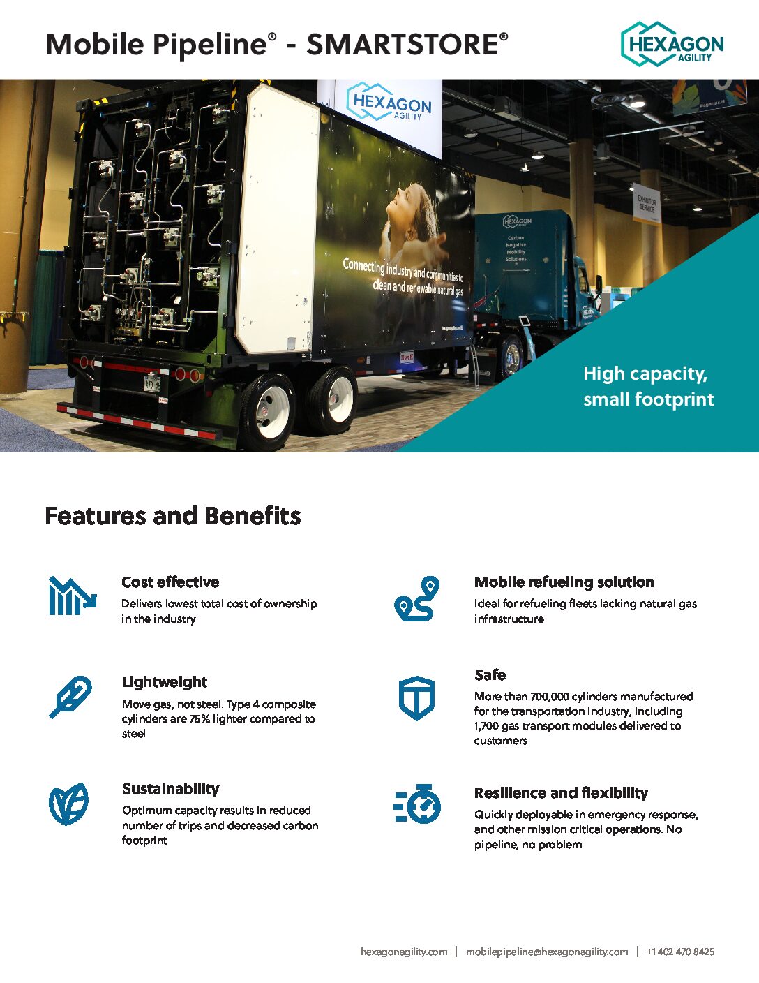 Hexagon Agility, a business of Hexagon Composites, is a leading global provider of clean fuel solutions for commercial vehicles and gas transportation. Its product offerings include (renewable) natural (renewable) gas storage and distribution systems, Type 4 composite natural gas cylinders, propane, and (renewable) natural gas fuel systems. These products transport clean gaseous fuels and enable vehicles to reduce emissions while saving operating costs. Learn more at hexagonagility.com